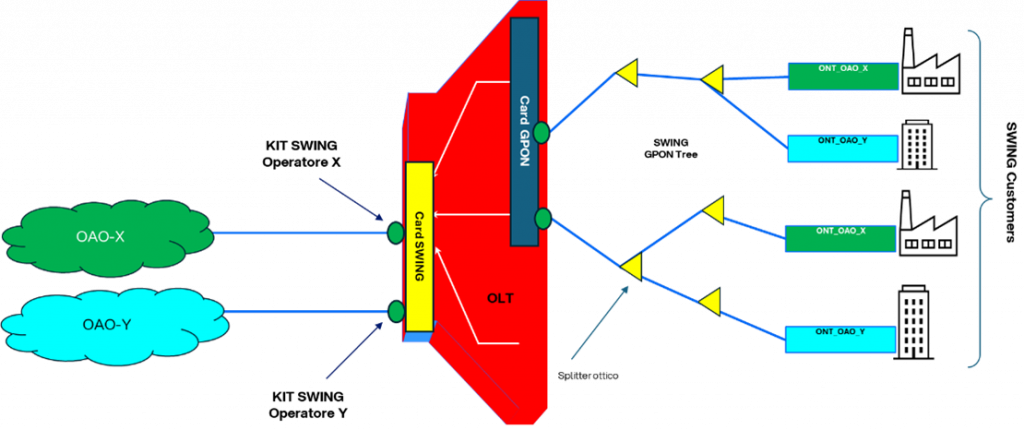 L’infrastruttura ottica passiva su cui si poggia il servizio è di tipo punto-multipunto PON, con albero PON dedicato ai soli clienti del servizio SWING per un massimo di 20 Clienti Finali per ogni singolo albero PON.